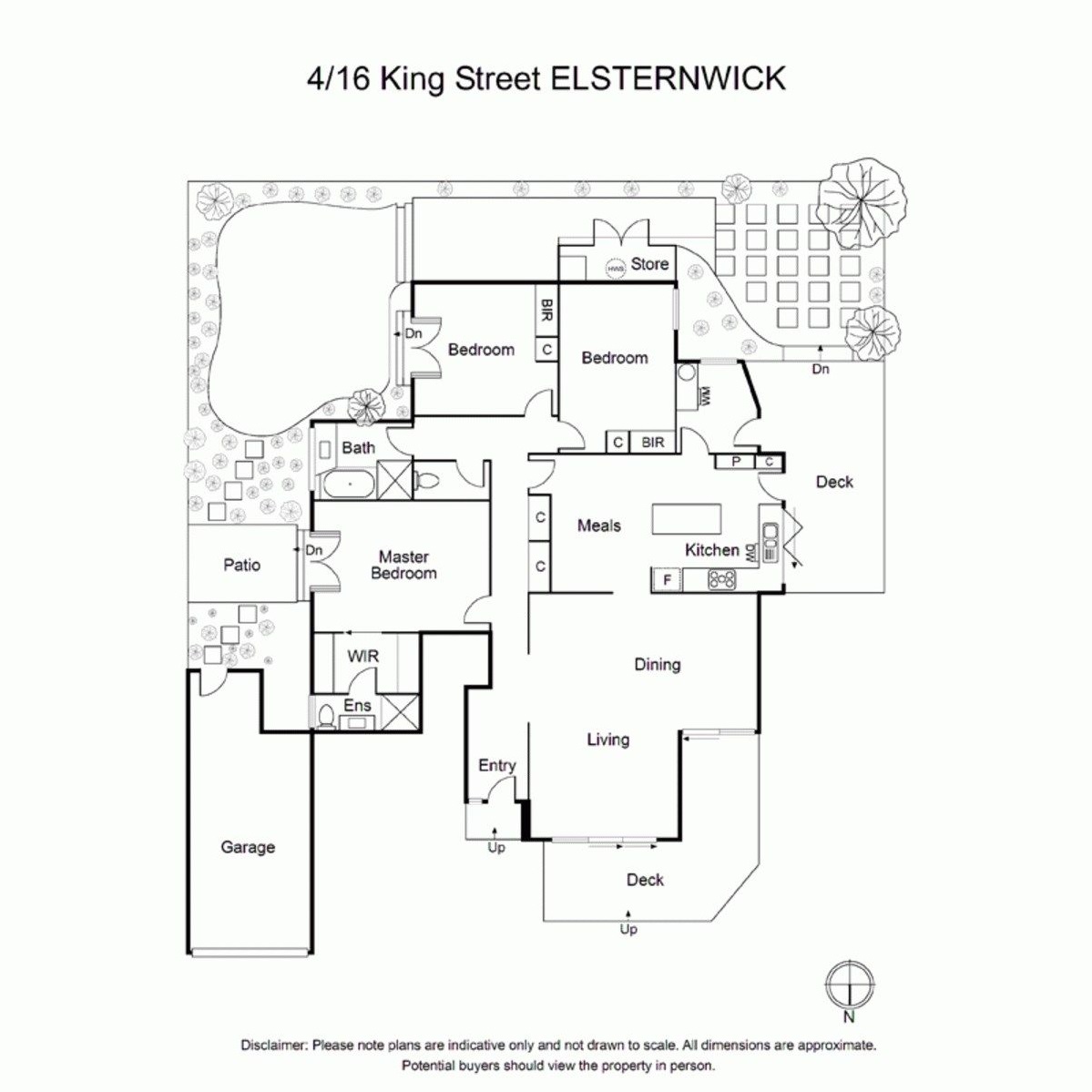 Wrapped in beautiful gardens, this uniquely spacious 3 bedroom 2 bathroom solid brick ground floor town residence is architecturally stylish with its original 80s shell encasing designer 21st century style. Capturing gorgeous northern light, this secluded home enjoys a fabulous north facing living & dining areas with a wrap around decked terrace taking in the private communal garden; modern Kosher friendly kitchen with embossed tiled splashback, bi-fold windows to a servery and Bosch appliances (2 ovens) opening to a west-facing deck; 3 generous bedrooms (BIRs, 2 opening to the east-facing gardens, main with WIR & ensuite), classic bathroom and fitted laundry.Ensuring every room has a picturesque garden view, this idyllic haven boasts polished concrete floors, high ceilings, double glazed windows, security door entry, ducted heating/air conditioning, exceptional storage and lockup garage. In this boutique group of 5, around the corner from Glen Huntly Road shops, cafes and restaurants, Harlston Park, tram and train.
